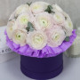 17 белых ранункулюсов в шляпной коробке в Балашихе